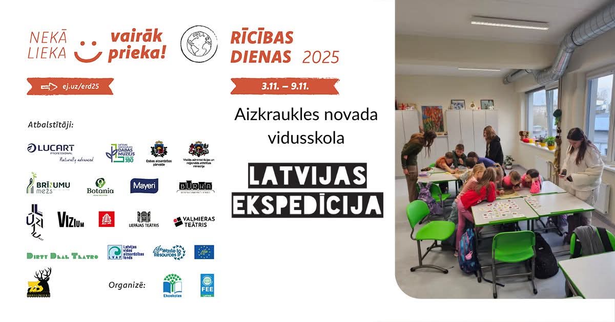 Ekoskolu programmā novembris ir īpašs mēnesis, jo visā Latvijā tiek rīkota kampaņa Rīcības dienas. Rosīgajā laikā no 3. līdz 9. novembrim, ar saukli “Nekā lieka – vairāk prieka!”, īstenojam aktivitātes, kas saistītas ar Ekoskolas gada tēmu.