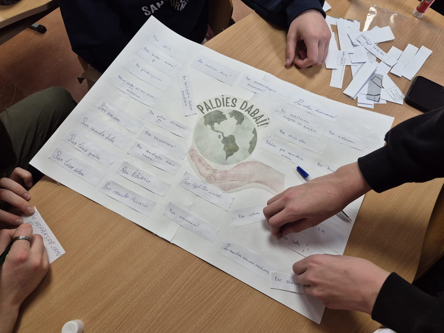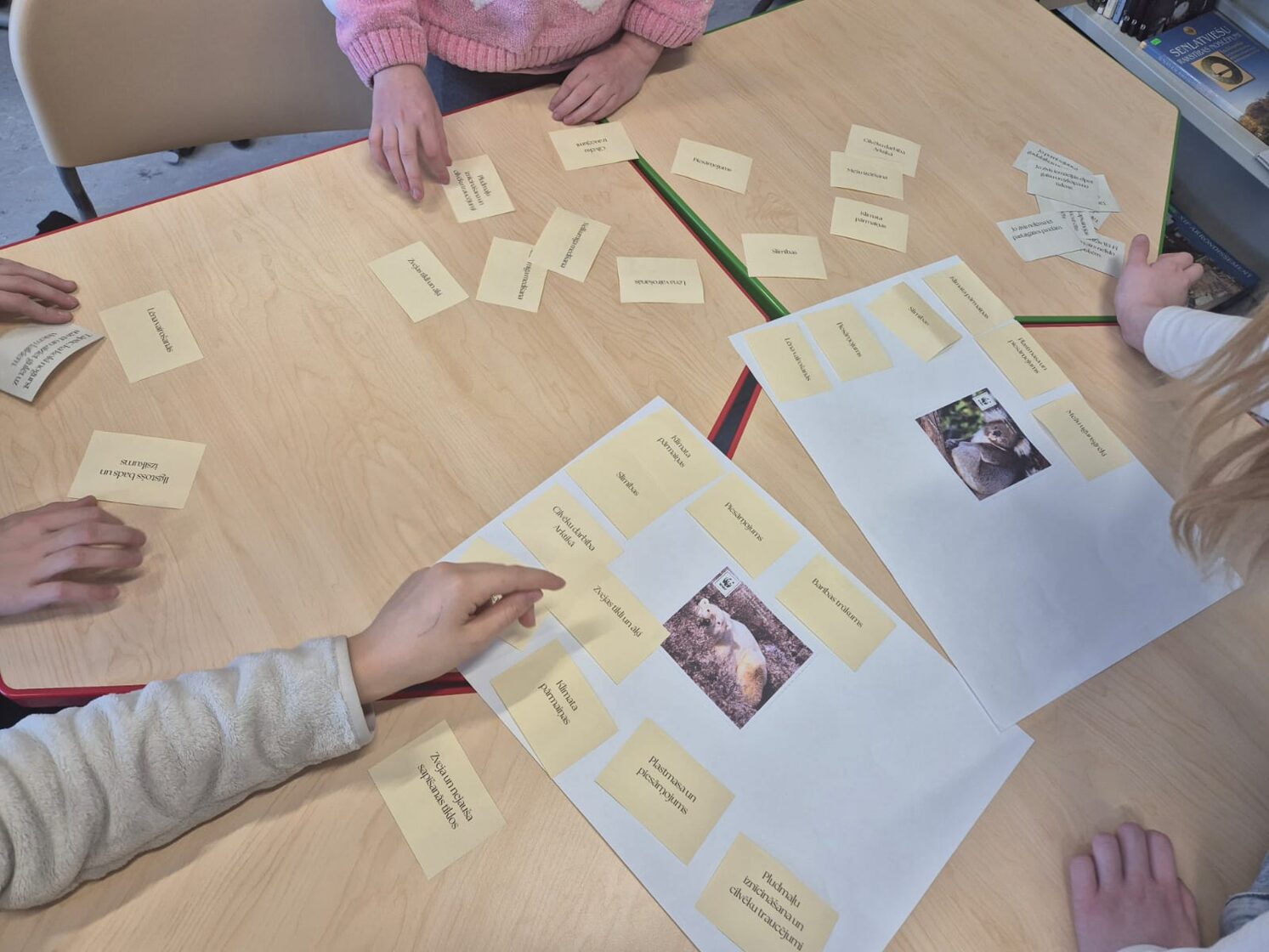 Tāpat tika spēlētas WWF tematiskās kartītes un aplūkoti attēli ar izmirstošām sugām. Diskusijās jaunieši ar skolēniem kopīgi meklēja iemeslus dzīvnieku populāciju samazinājumam – globālā sasilšana, ūdens piesārņojums un citi cilvēku radīti faktori.