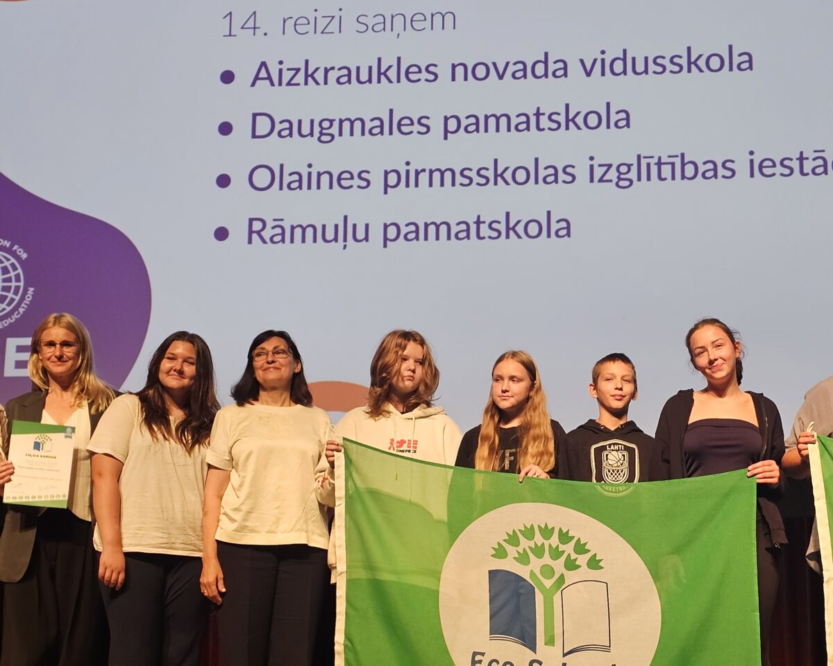 Ekoskolas nosaukumu un Zaļā Karoga balvu. Vēl 67 skolas saņems diplomu un