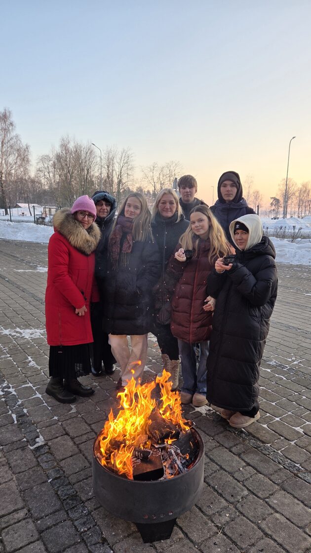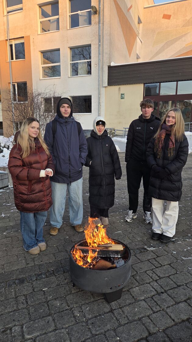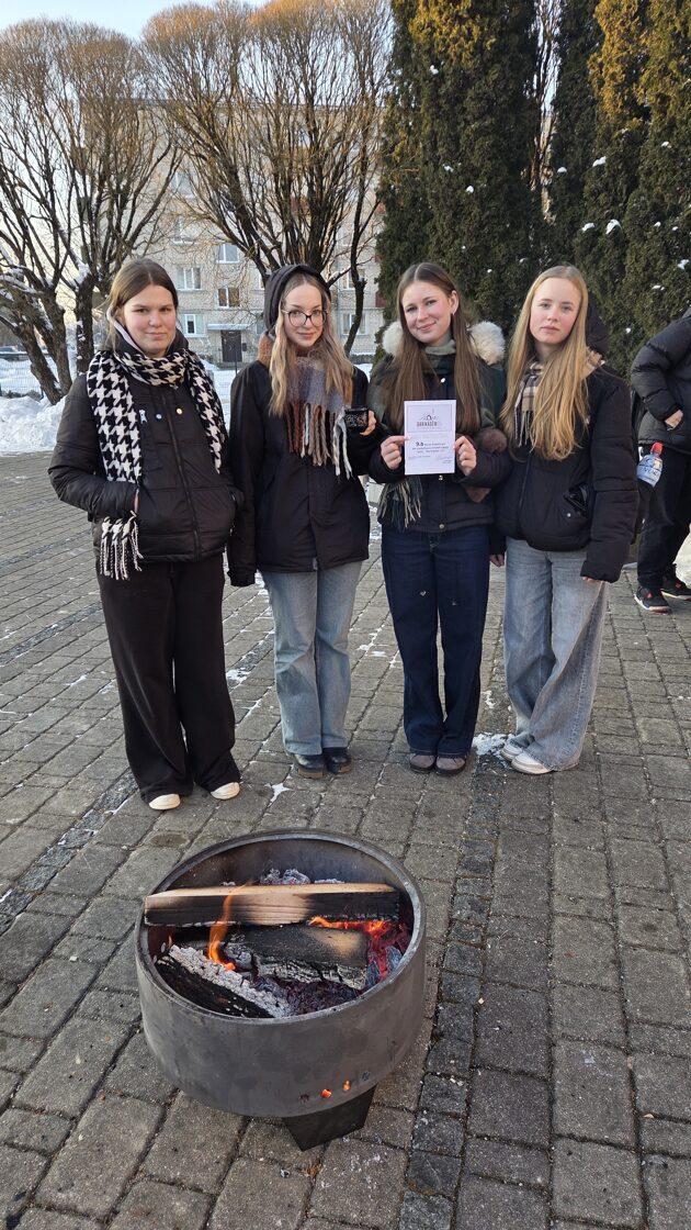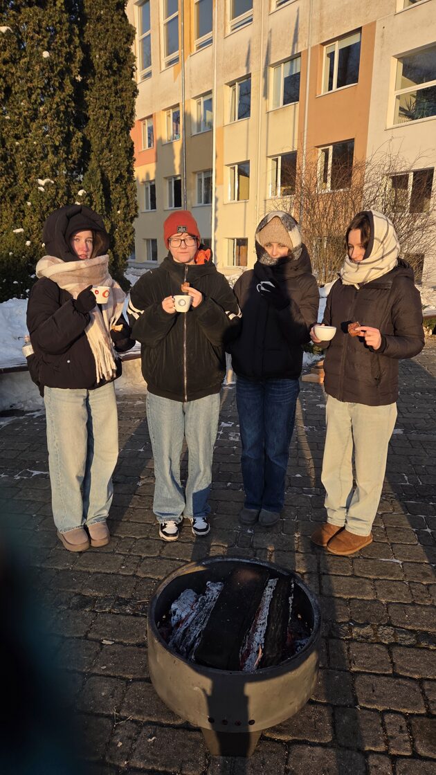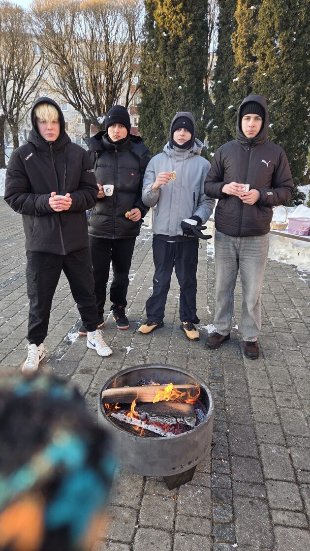 Pēc cilpošanas skolēni varēja pasildīties pie ugunskura un iedzert tēju ar pīrādziņiem, par šo parūpējās skolas direktore Zita Šteinberga.